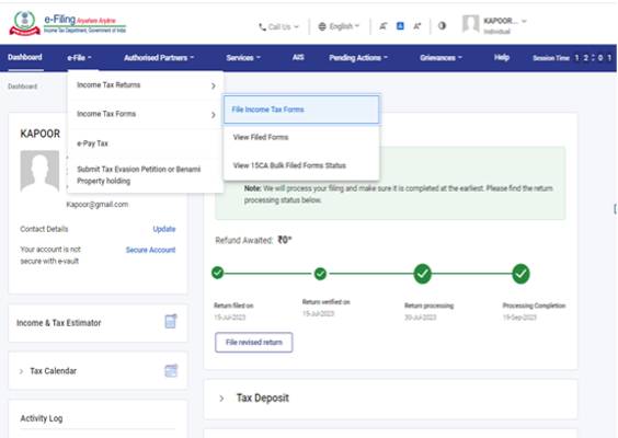 - Go to E File >> Income Tax Forms >> File Income Tax Forms